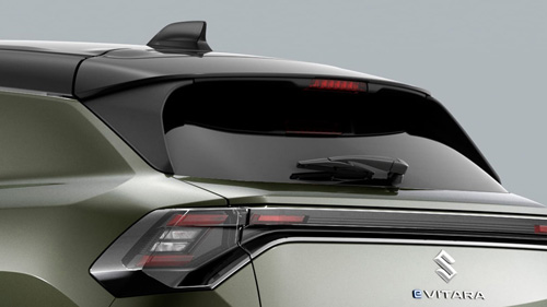 e VITARA dizaina tēma ir „High-Tech x Adventure“. Automobiļa āriene apvieno elektroauto tehniskās inovācijas ar apvidus auto jaudīgo dabu. Suzuki e VITARA efektīgo ārējo veidolu uzsver melnas līstes, lieli riteņi un gara garenbāze.